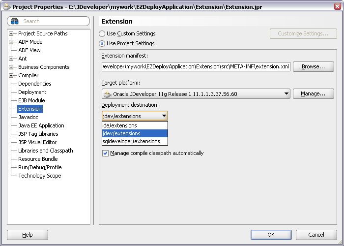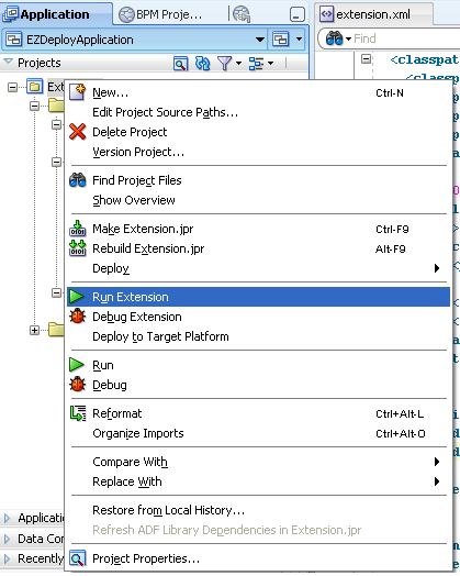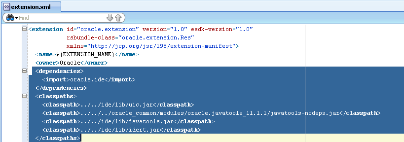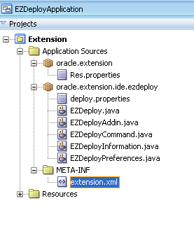 For details on the tags in the extension.xml file, see the file JDEV_HOME/jdev/doc/extension/ide-extension-packaging.html