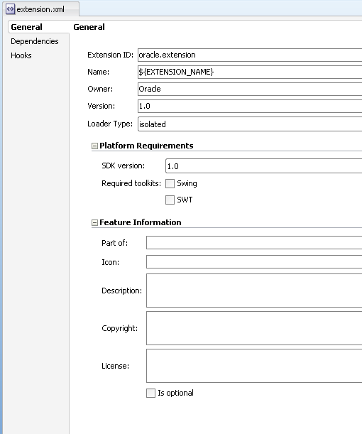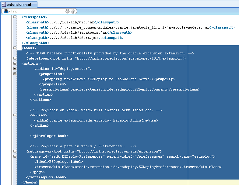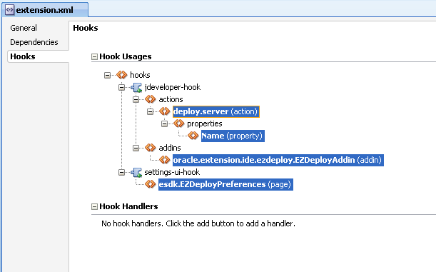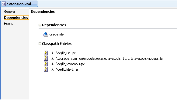 Hooks – Will have the points at which the extension will be added to the Jdeveloper ide.