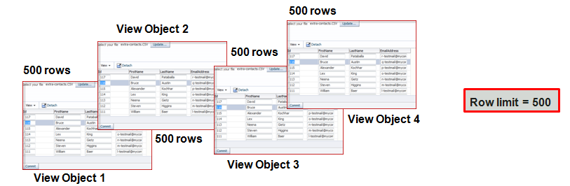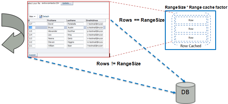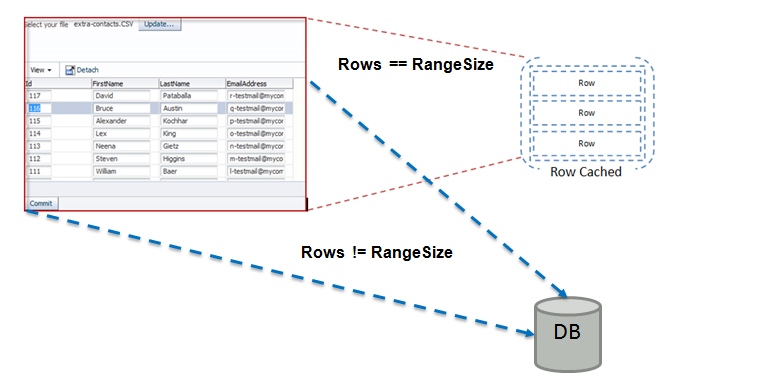 RANGE_PAGING – The paging is done based on the RangeSize defined. If the rows which are requested are not in the range then the rows are fetched from the database using the ROWNUM query. it only keeps the current range (or “page”) of rows in memory in the view row cache at a time