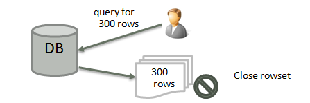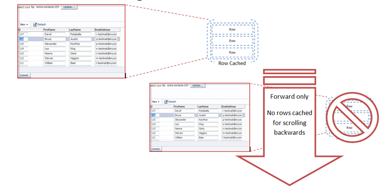 SCROLLABLE – Rows are cached in a collection. This is the most flexible mode for accessing rows and working with a RowSet. Ideal for less number of rows. For large numbers use RANGE_PAGING or RANGE_PAGING_INCREMENTAL.