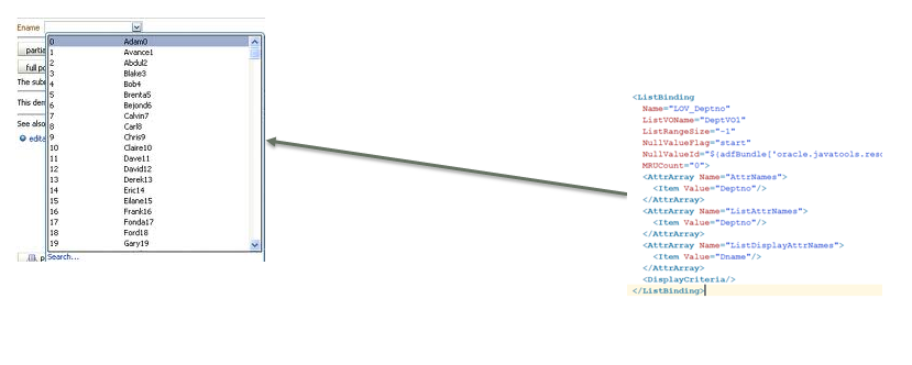 ListRangeSize is the setting for the List of values that is added to the attribute in the View object which will be set to less value to reduce large number of rows getting returned unnecessarily. Setting -1 will retrieve all the rows. Check in the VO for this property.