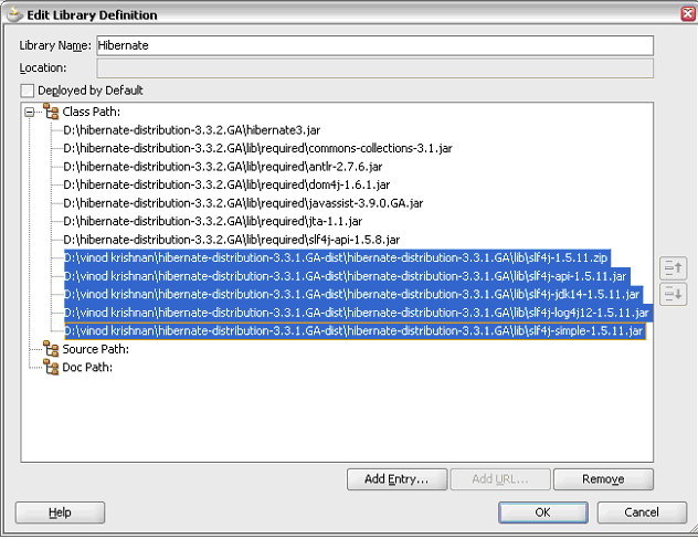 Provide the Library Name as ‘Hibernate’ (can be of your choice) and add the following libraries